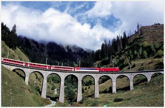 RHAETISCHE BAHN/RhB - Glacier Express: Bugnei Viadukt zwischen Disentis und Sedrun im Buendner Oberland. Glacier Express: Bugnei viadukt between Disentis and Sedrun. Copyright by Rhaetische Bahn By-line: swiss-image.ch