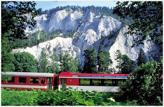 RHAETISCHE BAHN/RhB - Glacier Express in der Rheinschlucht (Ruinaulta), dem 'Swiss Grand Canyon'. Glacier Express in the Rheinschlucht (Ruinaulta), called 'Swiss Grand Canyon'. Copyright by Rhaetische Bahn By-line: swiss-image.ch